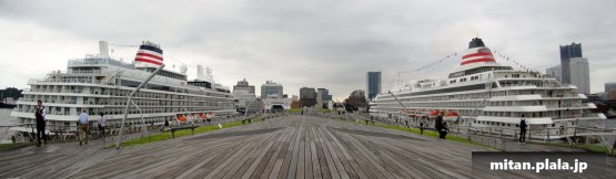 横浜港の大さん橋の両サイドに、飛鳥IIと飛鳥IIIが停泊しているというとてもレアな状況に、会社の昼休み+αで撮影に。