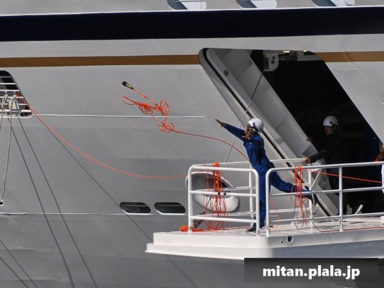 飛鳥IIIの命名式の時もそうでしたが、飛鳥二隻が揃うときは向きを揃えて沖側に船首を向けていました。(サービスかな?)