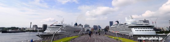午前9時に、大さん橋に飛鳥IIと飛鳥IIIが同時に入港するということで早起きして行ってきました。